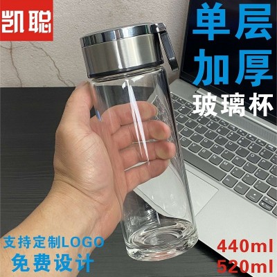 凯聪单层加厚玻璃杯大容量杯子耐热提环水杯便携男士带过滤茶杯